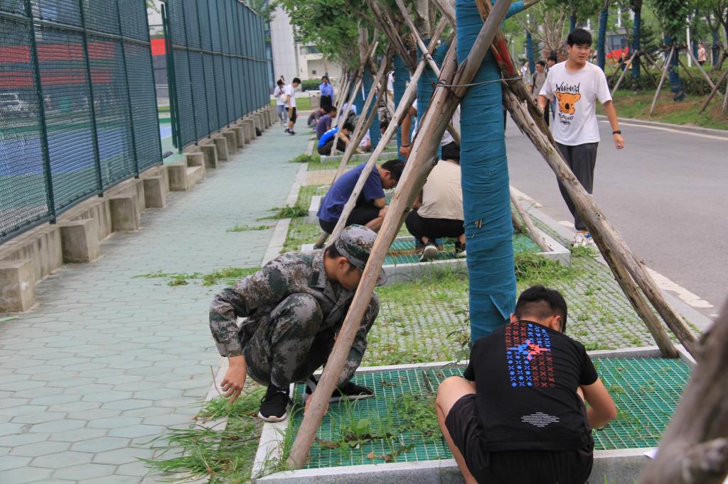 正值五月,雨后校园的一些角落里杂草丛生。活动当天,天气炎热,但是全体师生劳动热情依然很高。活动开始之前,邵传雷、柳卫国详细讲解了拔草活动的意义、拔草注意事项,同时提醒大家务必要注意个人安全。大家根据分组划定拔草区域后,迅速展开工作。汗水流下的同时,换来的是校园的整洁。有个别学生是第一次参加此类活动,他们表示活动很有意义,希望以后可以多开展。