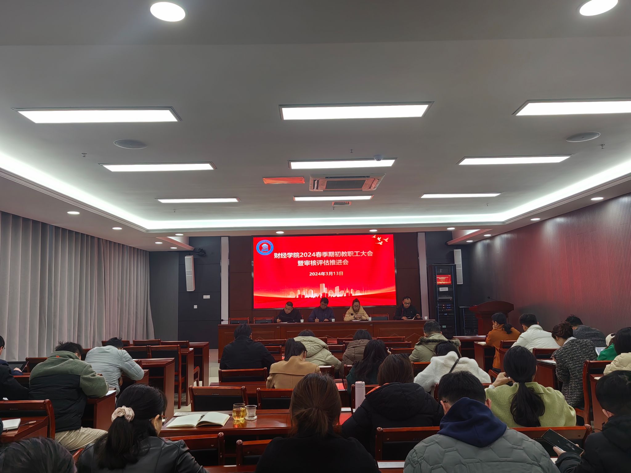 3月13日下午,财经学院在西辅楼111会议室召开全体教职工大会暨审核评估推进会。学院党政领导班子、全体教职工参会,会议由学院党委副书记、纪委书记耿广汉主持。