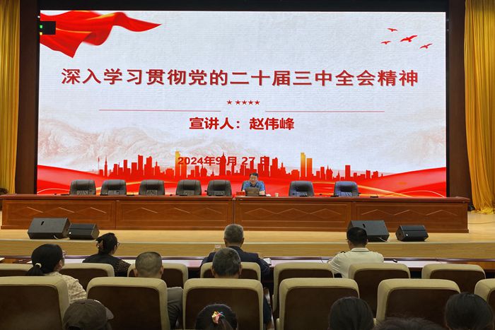 赵伟峰围绕深刻理解党的二十届三中全会的重大意义、深入学习领会习近平总书记在党的二十届三中全会上的重要讲话精神、准确把握进一步全面深化改革的重要性与必要性和需要把握的重大原则与重大问题、全面贯彻党的二十届三中全会精神等四方面,进行系统阐述和解读。他指出,二十届三中全会是我们党在关键时期召开的一次十分重要的会议,下一步要结合学校事业改革发展实际,全力以赴抓好全会精神的贯彻落实,以钉钉子精神推动学校事业改革发展取得新成效。(特约通讯员:张俊 摄影:张俊 审核:杜小明)