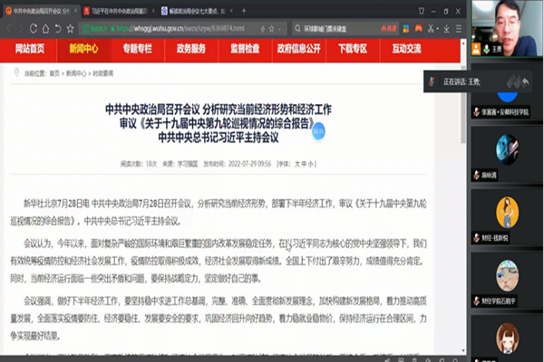 会上,王勇带领支部全体教师集中学习了习近平总书记在视察中国人民大学考察时的重要讲话精神,并领学了7月28日中共中央政治局会议对当前经济工作形势的分析和下半年经济工作的部署等内容。