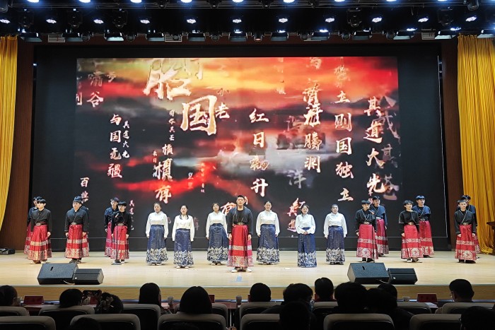 近年来,学院始终坚持把思政教育作为一项培根铸魂的基础工程来抓,着力打造“灯光下、舞台上”的思政教育与艺术教育深度融合新模式,充分发挥文艺活动在塑造价值观念、引领精神理念等方面的隐性教育功能,在思政铸魂和艺术教育的融合中浸润中国心、厚植爱国情,使青年学生真正成为中国精神的忠实传承者和弘扬者。(特约通讯员:朱中军 摄影:易凯、汪浩东 审核:耿广汉)