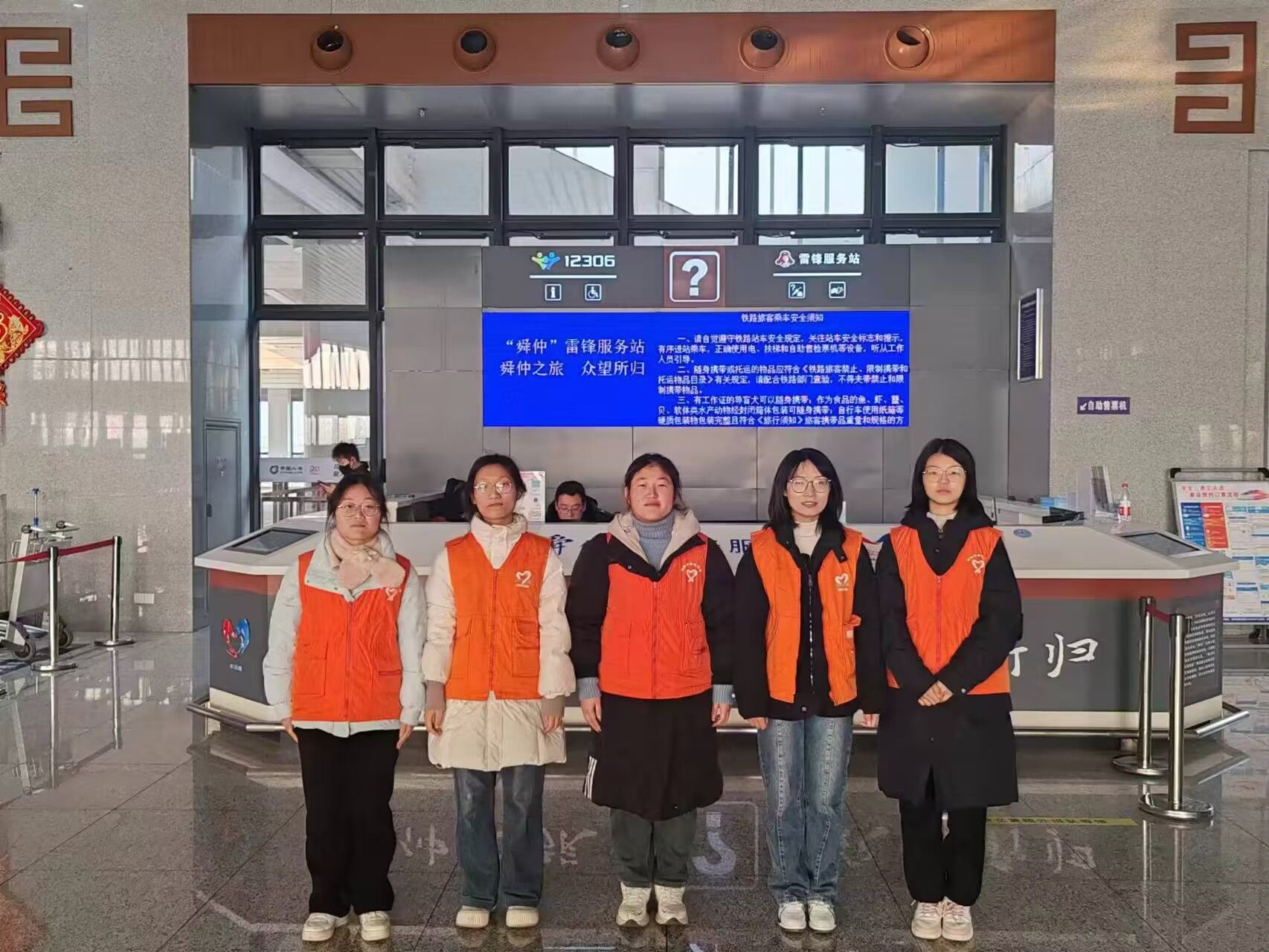 随着春节假期的结束,一群充满活力的大学生志愿者们又齐聚颍上高铁站,开展了一场特殊的寒假社会实践活动。2月16至2月23日财经学院金融工程231班团支部多名成员积极参加高铁站志愿服务,他们通过实际行动服务旅客,实践青年责任,展示当代大学生的风采。