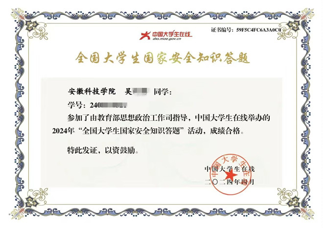 组织参加知识答题。学院组织各班级学生通过中国大学生在线网站、微信公众号参与“全国大学生国家安全知识答题”活动。以知识问答的方式普及和巩固国家安全知识,引导大学生坚定维护国家政权安全、制度安全、意识形态安全,营造国家安全人人参与、人人有责的浓厚氛围。