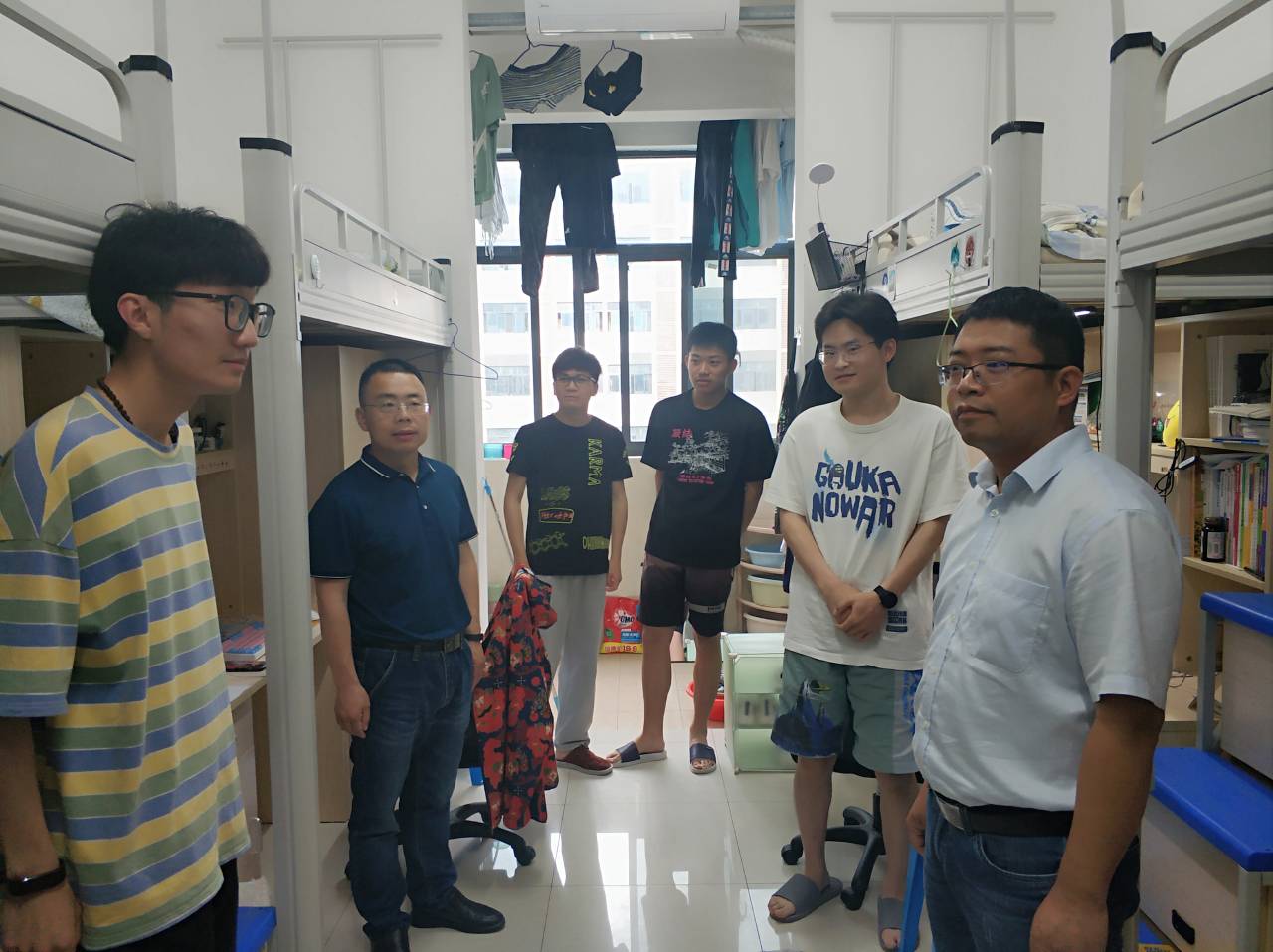 在走访过程中,杜小明和住宿学生进行了亲切地交流和慰问,向住宿学生了解宿舍生活情况,询问同学们日常生活中遇到的问题,给予相应的生活建议,随后耿广汉对学生宿舍安全隐患进行了排查,对住宿学生强调了寝室安全问题,对学生外宿情况也进行了排查。