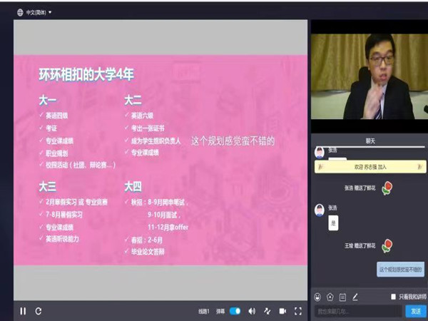 为促使2022级新生尽快确立大学学业目标和职业理想,使同学们深刻认识职业规划的重要性,科学合理地规划大学四年的学习生活,财经学院于9月19日晚线上开展了大学生学业与职业规划专题讲座。专题讲座邀请了泽稷国际会计研究院副院长韩星担任主讲。讲座由学院团委书记薛枫主持,专职辅导员尹成超与全体新生一起聆听了讲座。