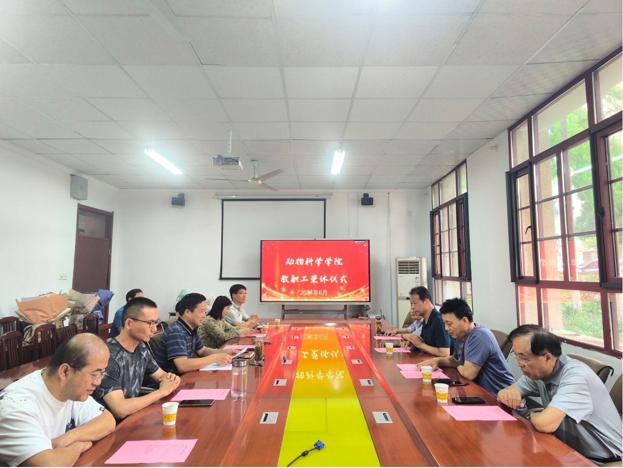 不忘春风桃李,致敬岁月芳华!为表达学院对退休教师的感恩和美好祝愿,6月24日下午,动物科学学院在学院104会议室为学院教师刘德义、胡忠泽、王立新、王明根等老师举行荣休仪式。学院党政领导、分工会主席、系室主任及教师代表参加荣休仪式,仪式由学院党委书记程斌主持。
