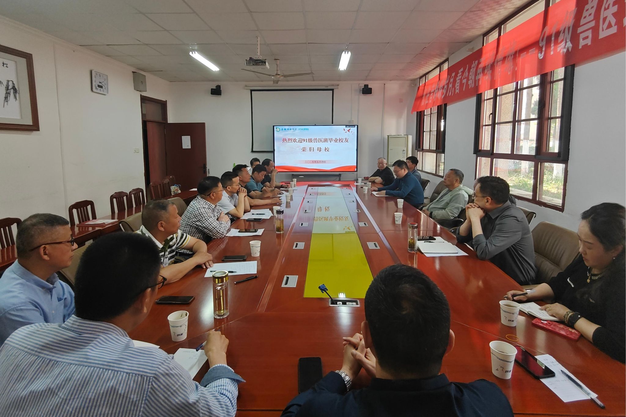 光阴流转,青丝染霜华。5月4日下午,动物科学学院1991级兽医班校友重返母校,举行毕业30周年座谈会。学院党委书记甘宗平,党委副书记、副院长(主持工作)周金星,教师代表及1991级兽医班校友参加活动,座谈会由校友代表黄义满主持。