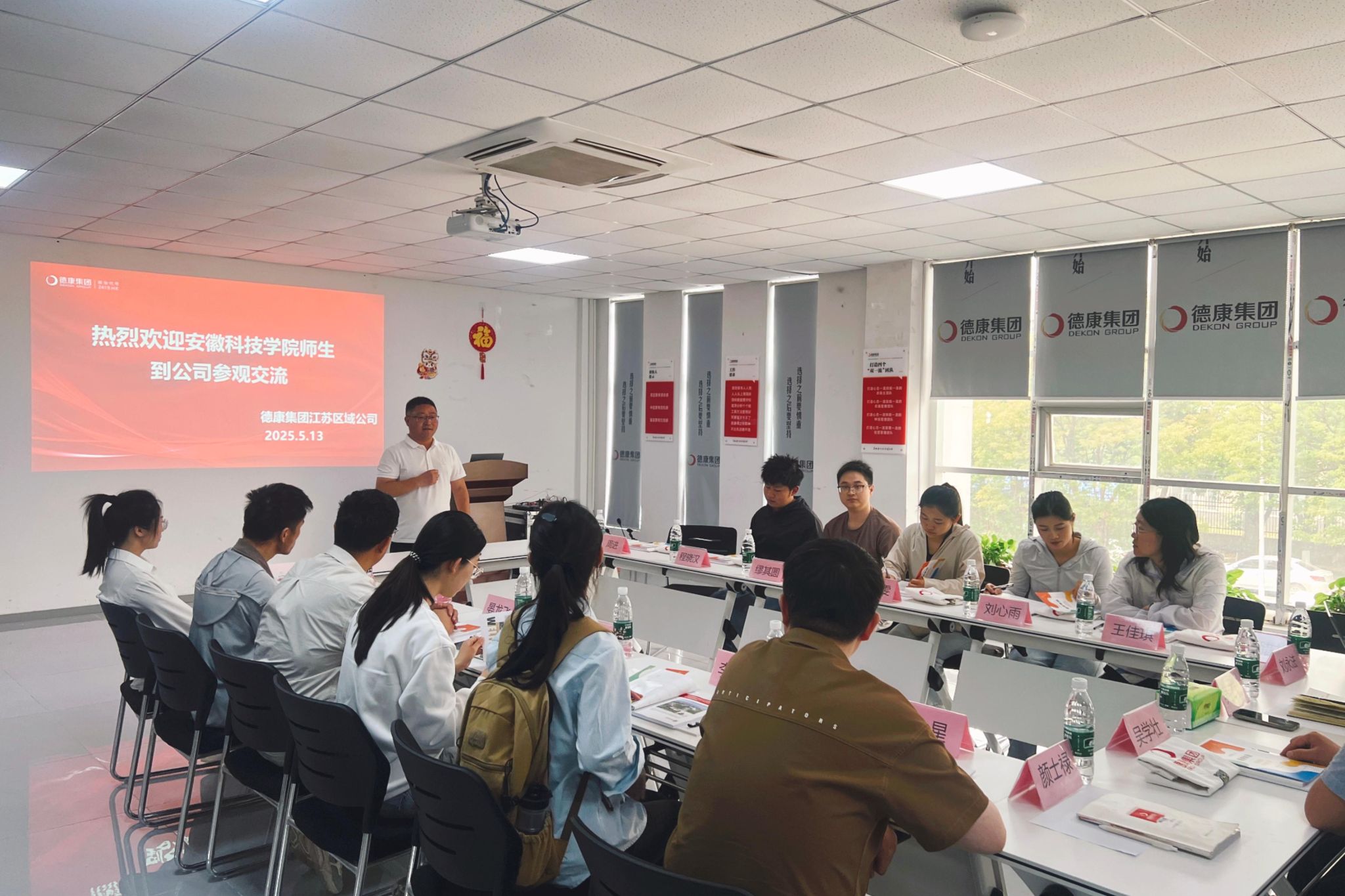 5月13日,动物科学学院硕士研究生导师、副教授吴学壮,研究生辅导员魏星带领11名研究生毕业生赴德康集团江苏区开展访企拓岗活动。德康集团江苏区总经理吴江利、副总经理颜士禄、副总经理刘永法热情接待了来访师生。