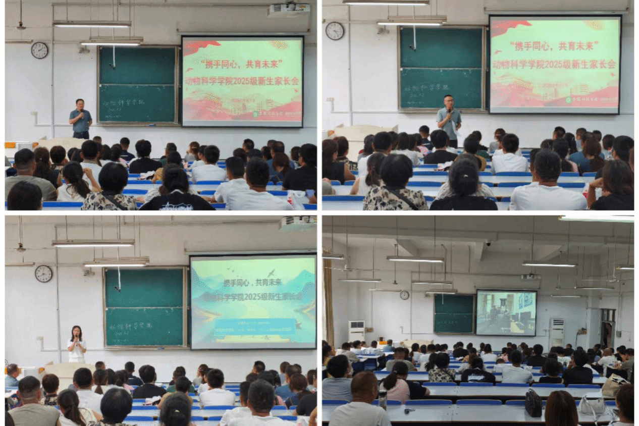9月7日下午,动物科学学院于求知楼A106召开“携手同心,共育未来”2025级新生家长会。学院党委书记甘宗平、党委副书记汤帅、学生心理健康指导老师王永芳、2025级新生辅导员及150余名新生和家长参会。会上,甘宗平对新生及家长的到来表示热烈的欢迎,介绍了2025级新生的录取情况及学院的发展历程、专业设置、师资力量、学科建设和育人成效,随后汤帅向家长介绍新生入学教育的安排,包括安全教育、国防教育、校史校训学习等内容,并强调将加强诚信教育和文明教育,引导学生树立正确的价值观。会议最后,王永芳介绍了新生可能会面临的心理问题,并介绍了学校免费开放的心理咨询服务,同时她建议家长做好孩子的倾听者,关注孩子的心理健康,家校联合,共同呵护学生的心理健康。