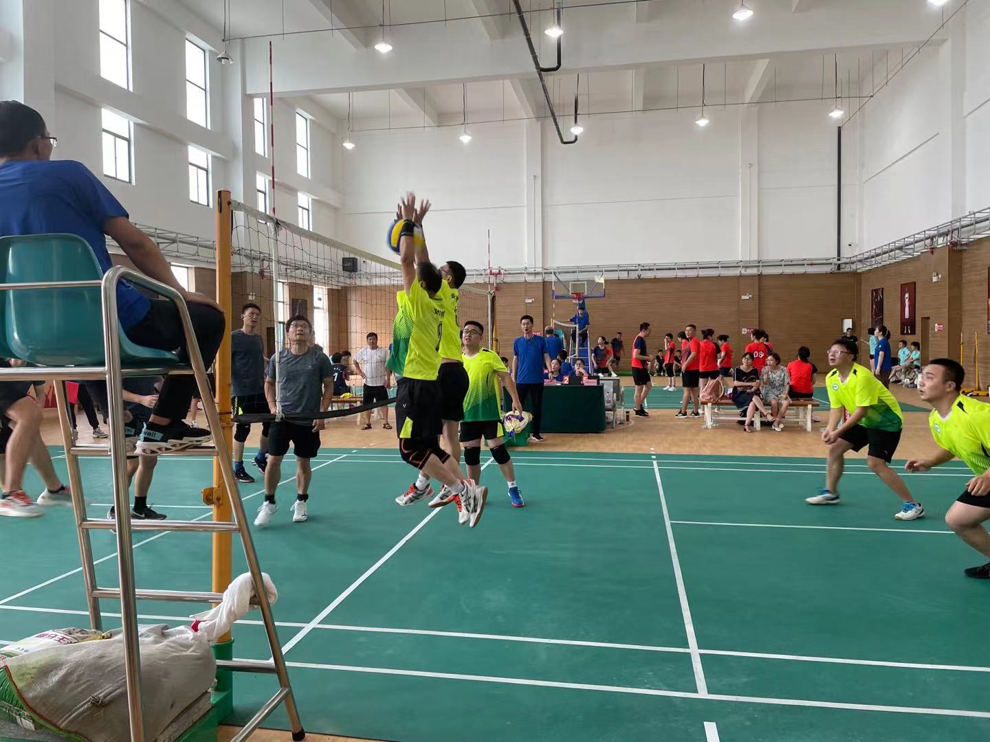 赛场上,我校运动员信心满怀、热情高涨,配合默契,发球、垫球、传球、拦网、吊球、扣球、补位救球,一个个娴熟的动作充分展示了我校教工精湛的排球技艺和团队协作精神,赢得了在场观众的阵阵掌声。