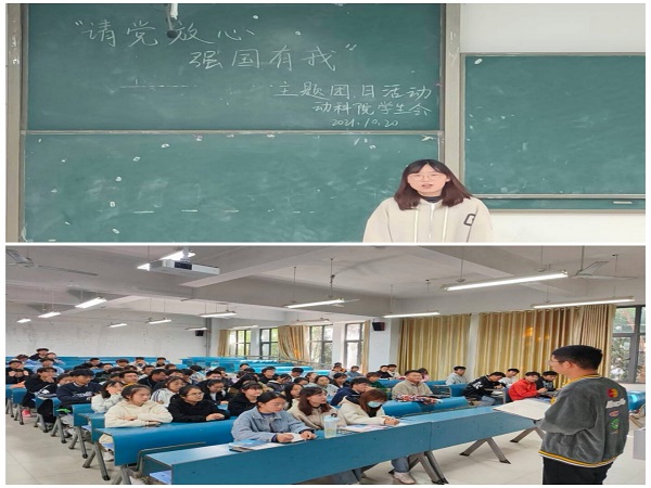 为深入学习贯彻习近平总书记在庆祝中国共产党成立100周年大会上的重要讲话精神,持续推进“学党史、强信念、跟党走”学习教育,动物科学学院学生会于10月20日在新知楼A座103召开“请党放心,强国有我”主题团日活动,学生会全体成员参与。活动由杨林主持,褚晨晨主讲。