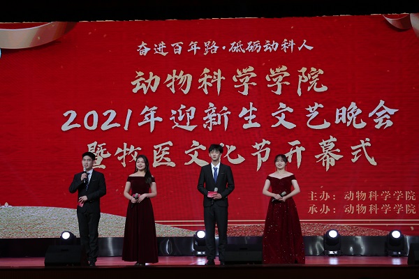 12月18日晚,动物科学学院在大学生活动中心举办“奋进百年路·砥砺动科人”2021年迎新生文艺晚会暨牧医文化节开幕式。学院党委书记姚勇,党委副书记、纪委书记汤帅,团委书记李焱,辅导员胡文丽、范雨梦应邀出席晚会。校学生会及各二级学院学生会主席团成员,学院19、20、21级学生应邀观看晚会。晚会由吴天君、邵艳、程子豪、冯悦主持。