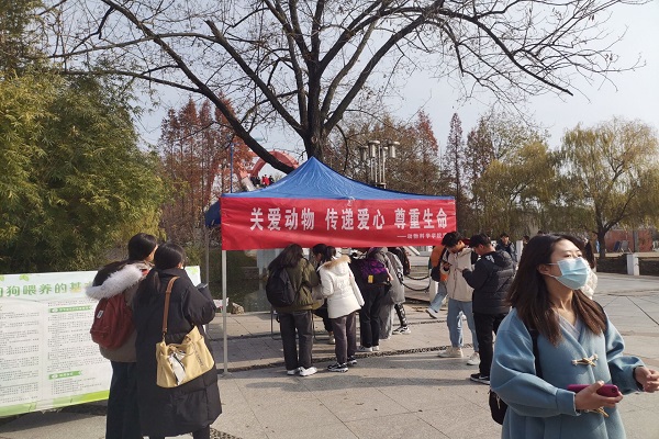 12月14日动物科学学院在西区小广场举办“关爱动物,传递爱心,尊重生命”签名墙活动。过往学生积极参与活动,在签名墙留下自身对生命的敬重,关爱动物的态度与决心。