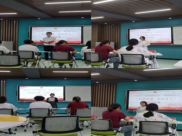 本次活动的开展是学院重视资助育人工作,将“扶困”与“扶智”,“扶困”与“扶志”相结合的重要表现,有助于进一步提高学生对国家资助政策的认识与理解,提高学生的诚信意识和感恩意识,增强学院资助育人实效。(特约通讯员:范雨梦 摄影:左运杰 审核:汤帅 )