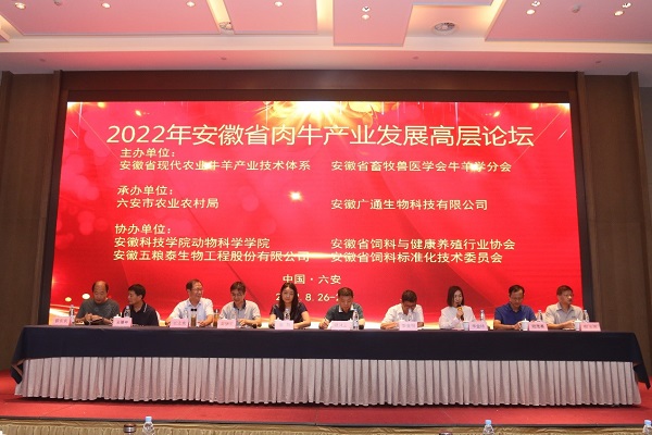 为进一步推动安徽省肉牛产业高质量发展,培育乡村振兴支柱产业,提升规模化肉牛场饲养管理水平和从业者技能,打造生态优质肉牛产业集群,实现肉牛产业综合效益的最大化,8月26日至28日,安徽省现代农业牛羊产业技术体系和安徽省畜牧兽医学会牛羊学分会共同主办的2022年安徽省肉牛产业发展高层论坛在六安市召开,来自省内外专家、肉牛养殖及饲料企业负责人等共计68人参会。