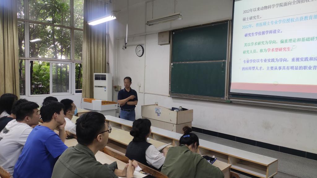 为引导研究生新生开好头、起好步,明确科研、学习目标,9月15日下午,动物科学学院邀请刘德义教授,在求A103为2022级畜牧领域研究生作题为《畜牧领域研究生培养与学位授予内容解读》的专题报告。此报告为研究生入学教育方案中“开学第一课”主题报告内容。2022级畜牧领域全体研究生参加。报告由动物学学院研究生秘书闫宁主持。