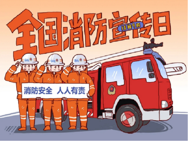 每年的11月9日是我国的全国消防日。在电话号码中,119是火灾报警电话,与11月9日中3个阿拉伯数字通形同序,易为人们接受,而且这一天前后,正值风干物燥、火灾多发之际,更应提高安全意识,减少安全隐患,关注消防安全,共建和谐校园。