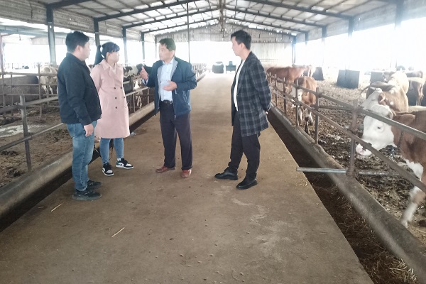 在牛场负责人王亚楠的配同下,实地调研了肉牛养殖情况,并深入了解了当前肉牛繁殖性能、犊牛成活率等基本情况以及当前生产中存在的主要问题。庞训胜教授和省肉牛产业技术体系岗位专家王淑娟对繁育母牛饲养管理、饲料配制、母牛配种及产后护理等方面进行了详细指导。