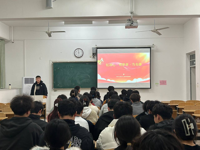 会议开始,主持人首先对点明本次团日活动的主题为“忆初心·明职责·当先锋”,强调深入学习我党的基础理论知识,继承雷锋精神的重要性,要求坚定信仰、实干担当、接续奋斗。并从多个方面提出了作为团员,应从自身出发,结合个人实际为个人的青春规划,奋力前进力量,把握核心要义的要求。