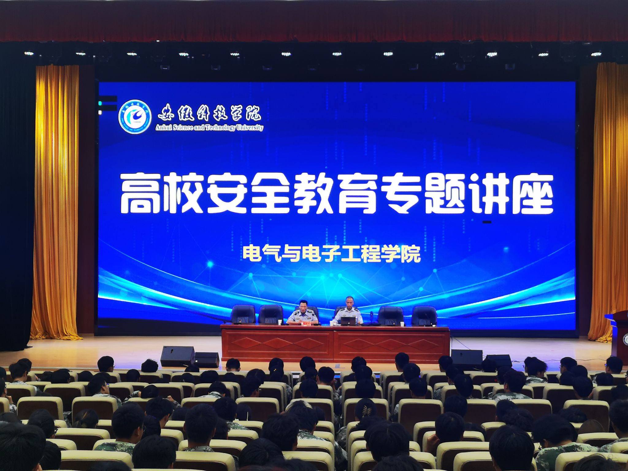 为提高学生安全意识,增强新生校园安全防范能力,925日晚,电气与电子工程学院在东附楼报告厅开展了安全教育专题讲座。本次讲座由“陈兴武工作室”成员蚌埠市龙子湖区公安分局陈兴武、王之高警官主讲。讲座由学院专职辅导员陈更强主持, 2025级全体新生参加。