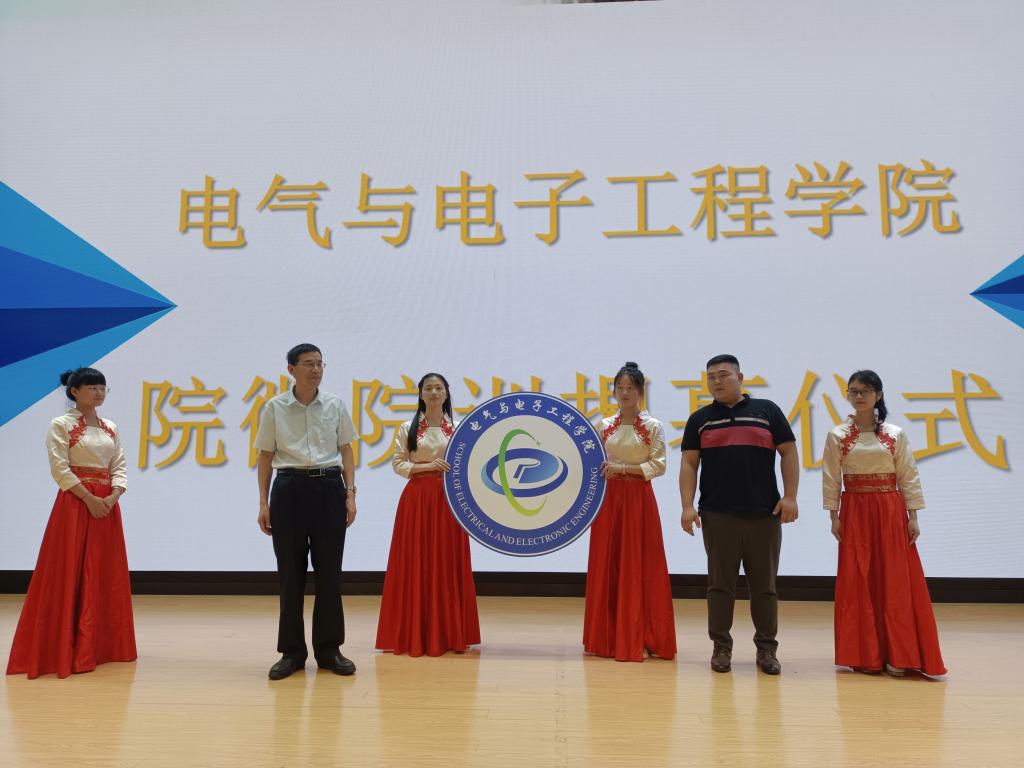 6月16日晚,电气与电子工程学院院徽院训揭幕仪式在东辅楼报告厅隆重召开。学院党委书记骆海邦主持会议,副院长(主持工作)、党委副书记夏显明,党委副书记尚磊,副院长国海,学院教职工及全体在校学生参加此次揭幕仪式。