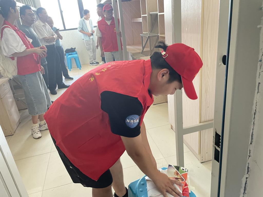 加强宿舍安全管理是一项非常重要的工作。学院领导深入新生宿舍,对学生宿舍安全隐患进行全面深入排查、不留死角。成员们在学院领导的指导下,认真地检查了桌椅、凳子、衣柜、插座等设备,确保其是否安全完好,同时将宿舍物件摆放整齐。