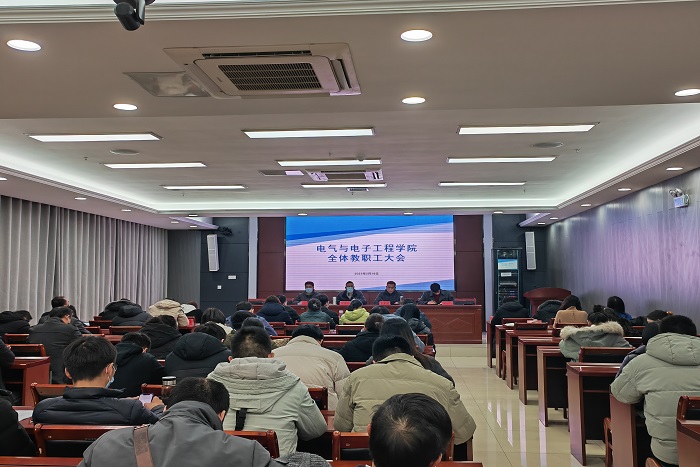 2月18日下午,电气与电子工程学院于西辅楼111会议室召开新学期全体教职工大会,学院党委书记骆海邦,党委副书记、院长夏显明,副院长国海、副院长樊晓宇及全体教职工参加了会议,会议由骆海邦主持。