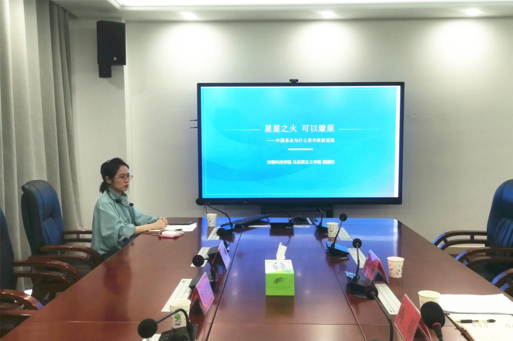 为推动党建与思想政治教育工作深度融合,促进党建工作提质增效,切实提升思政育人实效,4月20日,马克思主义学院纲要教研室教工党支部教工党员戴婧佼受邀在西辅楼317会议室作了题为《星星之火 可以燎原》的主题党课。电气与电子工程学院党委副书记、纪委书记尚磊,党政办公室主任王延丽,光电建电专业学生党支部书记张深及支部全体党员聆听党课。