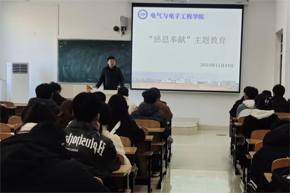为进一步弘扬知恩图报、无私奉献的传统美德,提高学院学生的“感恩与奉献”意识,树立正确的世界观、人生观、价值观。电气与电子工程学院11月24日在致知楼C108举办“感恩奉献”主题教育大会。学院全体资助委员、2023级国家助学金获得同学参加会议,会议由专职辅导员张深主持。
