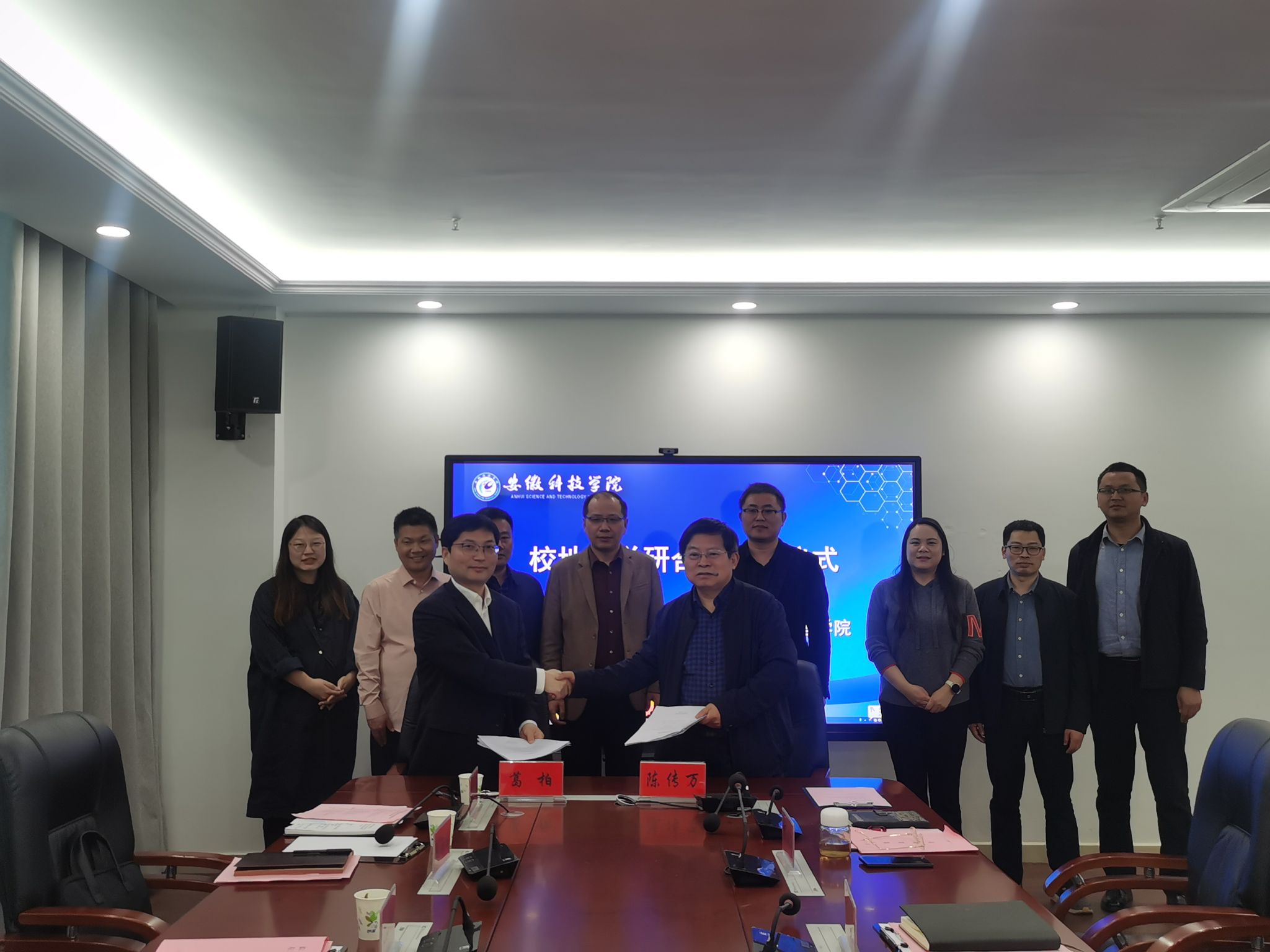 为进一步推动校地融合发展,精准对接我校科技、人才与地方经济发展之间需求度,推动校地产学研用深度融合,4月19日,长丰县左店镇党委书记葛柏,党委副书记杜峰,党委委员、宣传委员郭越,党委委员、武装部长刘海涛,党政办主任吴建华,左店社区党总支书记代宗恒一行六人应管理学院邀请,来校洽谈校地合作事宜,校科研处副处长刘宗飞,管理学院党委书记丁景良、院长陈传万、副院长郑谦、副院长张国宝,开云官方注册服务地方发展研究院院长余海兵教授出席签约仪式,仪式由丁景良主持。
