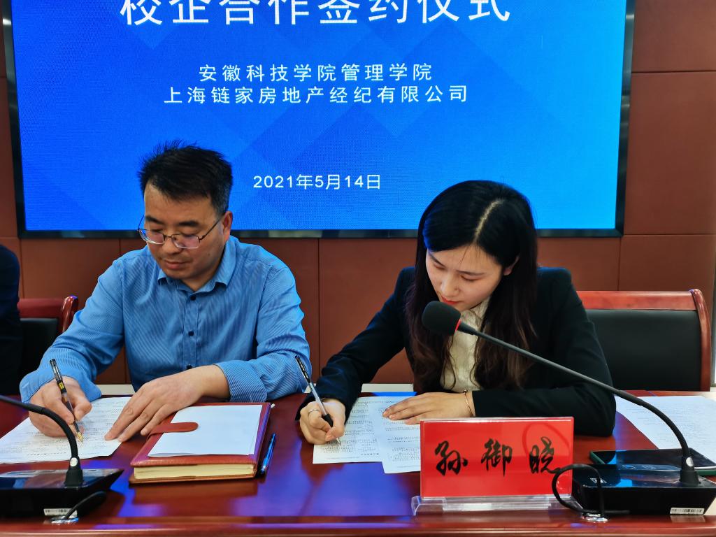 赵伟峰与孙御晓共同签署了《开云官方注册与上海链家房地产经纪有限公司校企合作协议书》。