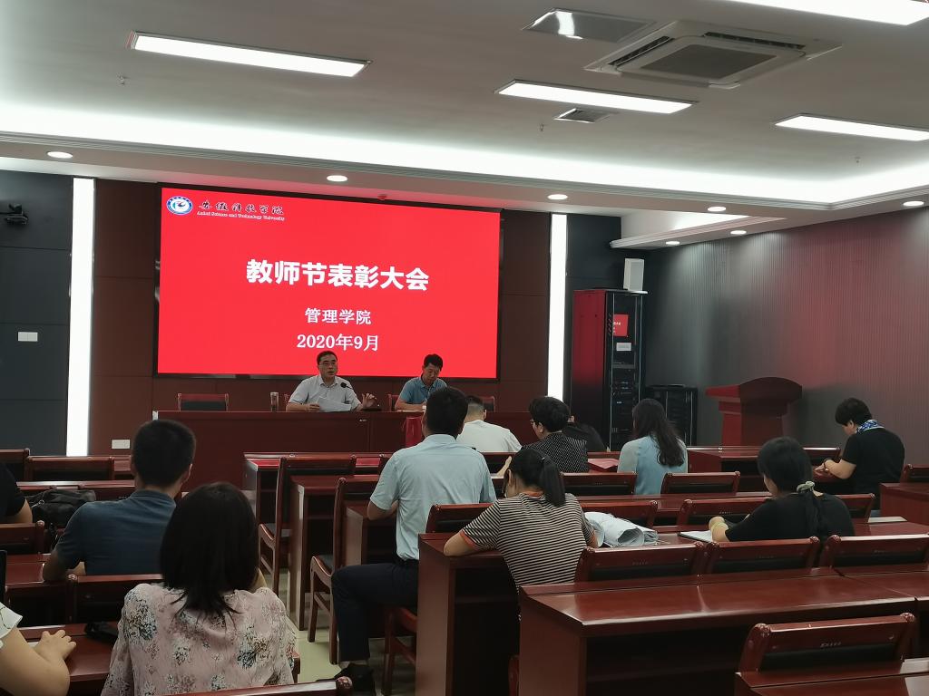 为迎接第36个教师节,激发全体教师教书育人的积极性、主动性和创造性,增强全体教师的职业荣誉感和使命感,管理学院于9月9日在龙湖校区西辅楼一楼会议室召开第36个教师节表彰大会,学院党政领导及全体教职工参加了会议,会议由副院长张德化主持。