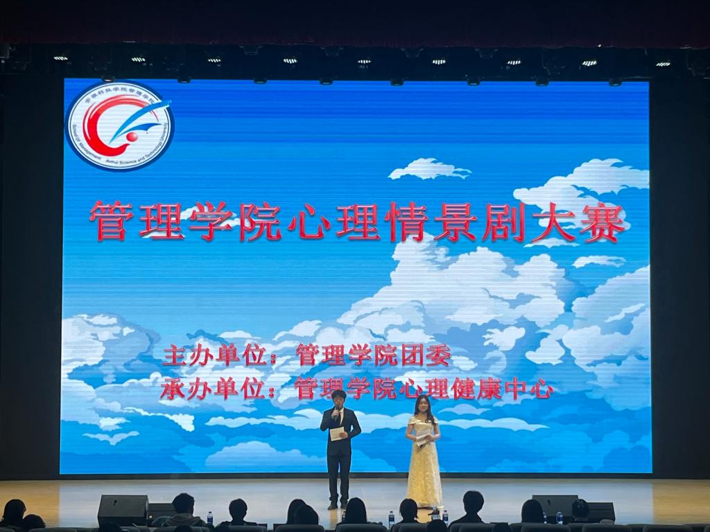 本次大赛由学院各班级八个队伍共同参加。比赛中,演员们的精彩演绎,用欢笑与泪水诠释了大学生心理成长的历程。各队特色鲜明的心理情景剧,映射出现代大学生心理情感世界的新历程,突出主题又不失趣味,起到了良好的心理教育效果。成长总是伴随着眼泪和喜悦,但当挫折在脚下堆积成梯时,你也就获得了进步的机会,《南美丛林里的绿树》的表演完美诠释了尼采的一句话“凡杀不死我的,会使我更加强大”。《融雪》让我们认识自我,悦纳自我,肯定自我,欣赏自我,幸福是一种能力,让我们学会幸福;青春期敏感细腻的内心情感被来自工商管理的芝士家族队展现的淋漓尽致,只要是忠诚的爱,都值得尊重与祝福;“在心里种花,人生才不会荒芜”《少女的白月光》展现了少女隐秘的心事,迷茫时的无措,告诉我们遇到困难时要勇敢向老师朋友求助。来自艺术团的张伟杰和孔德烁同学也在中场休息时为同学们带来了精彩的歌曲表演。