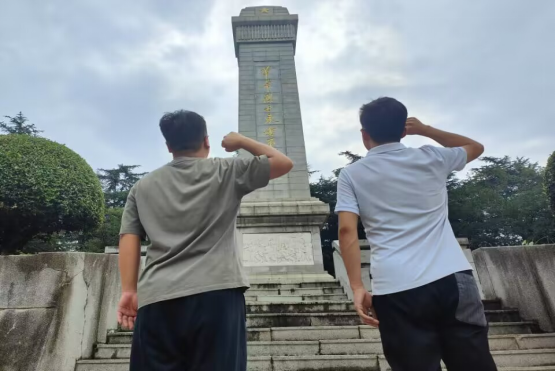 夏风徐徐,翠柏静哀。随后,实践团同学们沿着烈士陵园台阶拾级而上,在庄严肃穆的烈士纪念碑前举行了简短又庄严的悼念仪式。在场的党员们还一起向革命烈士默哀,重温了入党誓词,铿销有力的入党誓词,纪念了那段战火纷飞的光荣岁月。
