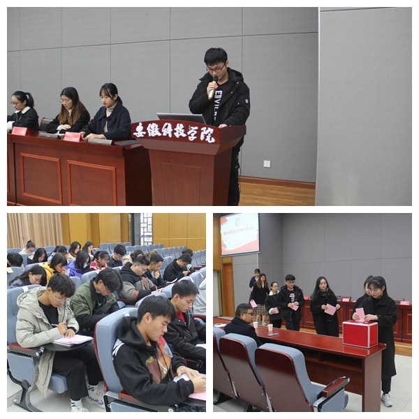 院学生会执行主席许恒恺代表院第四次学生代表大会委员会作了题为《积极、服务、高效、创新,努力开创管理学院学生工作的新篇章》的工作报告。报告中,他从思想引领、组织提升、校园文化、社会实践、志愿服务、创新创业等方面总结学生委员会一年以来的工作成果,并对学生委员会今后工作总体思路和主要任务做了汇报。