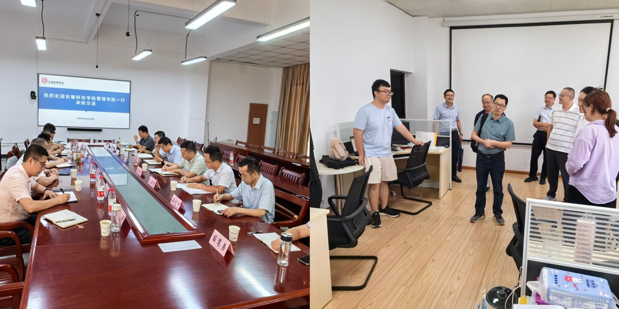 在巢湖学院工商管理学院,管理学院一行受到巢湖学院工商管理学院院长陶有田、副院长赵祺,数学与大数据学院副院长彭维才等人的热情接待。交流会上,巢湖学院市场营销专业负责人余雷、大数据管理与应用专业负责人吴云标分别就市场营销专业的长三角新文科教育专业认证工作,大数据管理与应用专业人才培养方案修订与建设工作进行了详细介绍;双方围绕专业认证、一流专业与新专业建设等工作进行了深入交流与探讨。会后,实地参观了巢湖学院工商管理学院实验室,走访了研究生工作室,并与我校农业管理2022级研究生们进行了亲切交流。