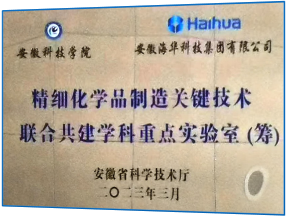 2023年3月,安徽海华科技集团有限公司联合开云官方注册申报并获批了精细化学品制造关键技术联合共建学科重点实验室(筹),其中安徽海华科技集团有限公司为主持单位,承担实验室主体建设工作;学校为联合共建单位。