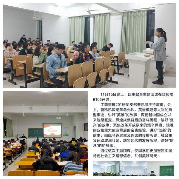 11月4日,管理学院组织观看学习了安徽省与广东省联合开展的《同上一堂课:网上重走长征路暨“四史教育”》直播学习课程,通过线上形式组织全院团学骨干、学生代表以宿舍、班级等为单位开展自主学习和分享交流活动。