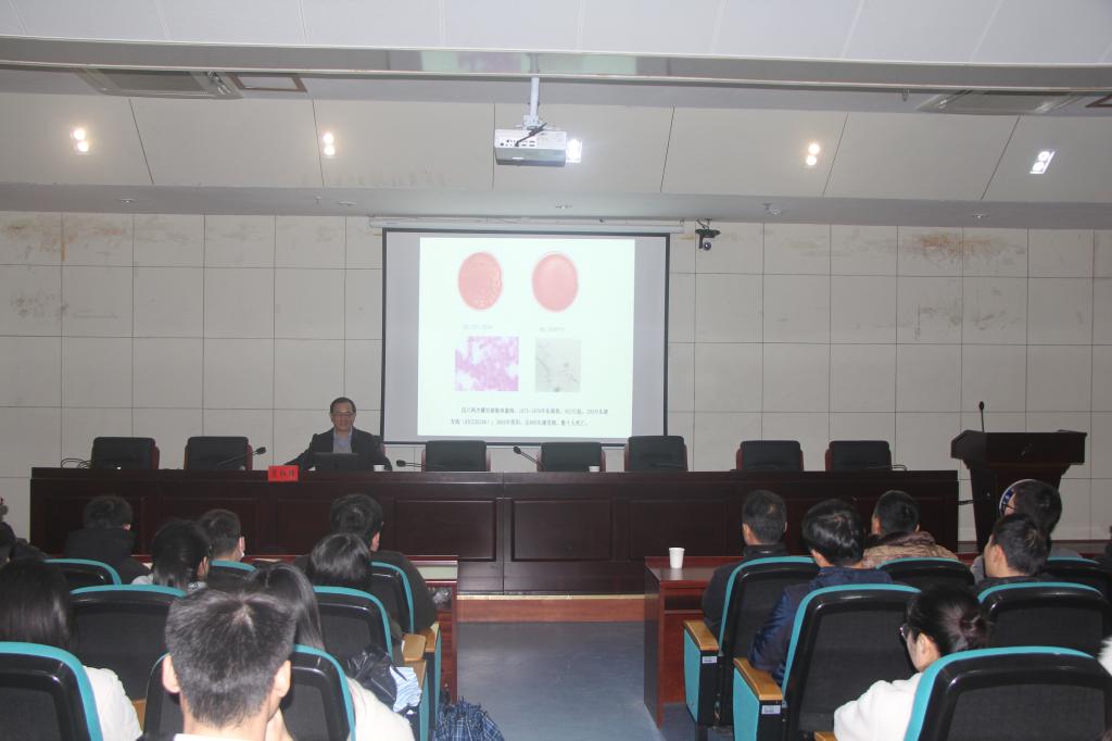 为加强青年教师科研教学能力培养,浓厚科研教学氛围,应校科研处和动物科学学院邀请,11月23日下午,我校特聘教授、南京农业大学教授、博士生导师范红结来我校为广大师生作了题为《Fic结构域蛋白影响兽疫链球菌致脑膜脑炎的机制》的学术报告。校科研处处长肖新、动物科学学院院长刘德义、动物科学学院近五年新进青年教师、部分硕士研究生聆听了报告,报告会由肖新主持。