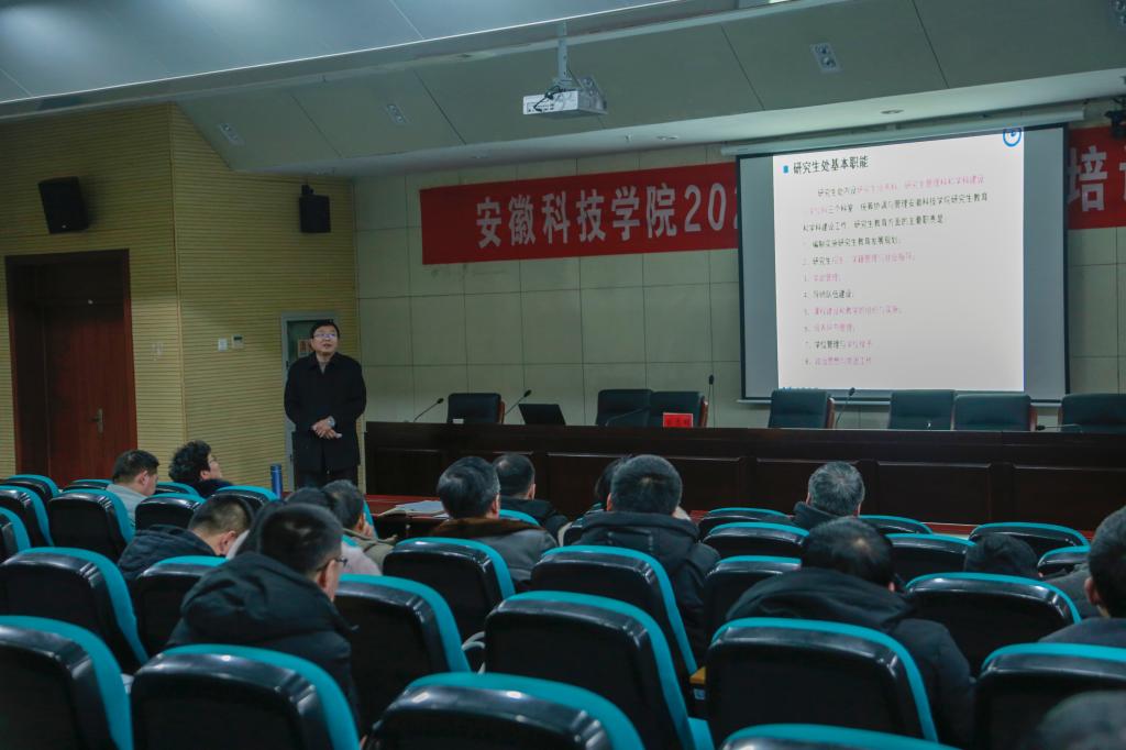 在我校首届研究生教育工作会议召开之际,为全面落实立德树人根本任务,努力建设一支“政治信念坚定、师德师风高尚、业务能力精湛、育人水平高超”的研究生导师队伍,全面提升研究生培养质量。近日,我校面向全体研究生导师开展了培训活动。我校知名校友、江南大学博士生导师刘立明教授,全国农业专业学位研究生教育指导委员会委员兼秘书长、中国农业大学李健强教授,安徽农业大学祁克宗教授应邀作专题辅导报告。