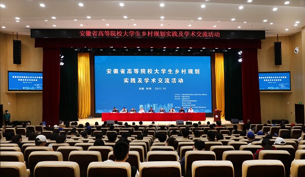 10月9日上午,2021年安徽省高等院校大学生乡村规划实践及学术交流活动在我校龙湖校区东辅楼报告厅启动。校党委委员、副校长黄友锐,中国城市规划学会乡村规划与建设分委会委员、安徽省城市规划学会副理事长、安徽建筑大学教务处处长储金龙教授,蚌埠市自然资源和规划局党组成员、总规划师汪云东,禹会区委常委、副区长余忠,原蚌埠市自然资源和规划局二级调研员、蚌埠市规划设计院院长刘锋,我校教务处处长赵伟峰、建筑学院党委书记傅友福,及省内外相关高校城乡规划专业师生270人参加活动。仪式由建筑学院院长张远兵主持。