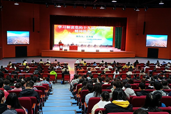 报告会深度解读了党的十九届六中全会精神的主要内容,深刻宣示了党的百年奋斗历史经验和重大成就,深刻揭示了决议的重大意义和丰富内涵,深度阐释了党对青年的高度关注关心和厚望,对于青年大学生准确认识和深刻领会全会精神,进而更好地走好新时代的伟大征程具有重要意义。报告内容丰富、内涵深刻、启迪性强,充分展示了主讲人深厚的理论素养和高超的授课艺术,与会师生听后深受教育深受启发,赢得了师生们阵阵热烈的掌声。(特约通讯员:石志成 摄影:石志成 审核:胡文靖 编辑:张威)