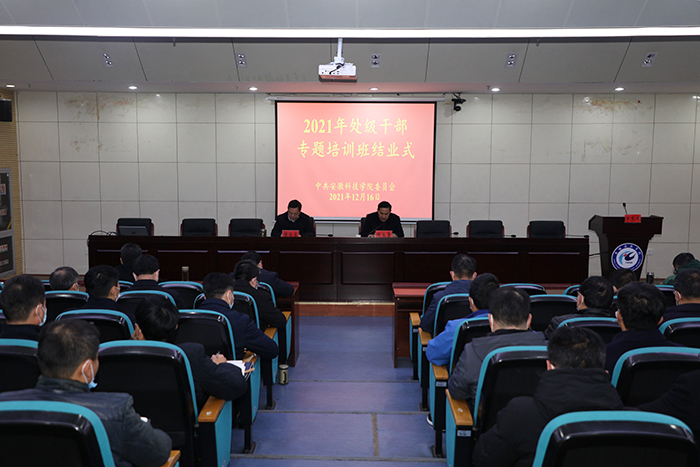 黄远友简要回顾了培训班的基本情况,充分肯定了培训班取得的成效,他就进一步抓好学习和有力推动工作对广大处级干部提出三点要求。一要坚定理想信念,不断提高政治执行力。政治执行力是领导干部政治能力的具体体现和实践检验,要准确把握政治执行力的丰富内涵,树牢“四个意识”,坚定“四个自信”,做到“两个维护”;要准确把握提高政治执行力的着力点,在提高政治站位、提升能力素养、强化责任担当上下功夫,不折不扣把上级组织和学校党委各项决策部署落实到位。二要弘扬优良学风,不断增强学习的针对性和实效性。要把好学习方向和重点,学懂弄通做实习近平新时代中国特色社会主义思想、党的十九届六中全会精神和省第十一次党代会精神;要以持之以恒的精神落实好各项学习任务;要抓好理论成果转化、当好实干家,切实做到学以致用、用以促学、学用相长。三要奋力真抓实干,全力推进年度重点工作落细落实。各单位各部门要牢固树立“自我加压、争先进位”意识,认真梳理年度目标任务完成情况,明确短板弱项、及时补缺补差。要根据学校第三次党代会和“十四五”事业发展规划确定的目标任务,科学谋划好2022年工作。