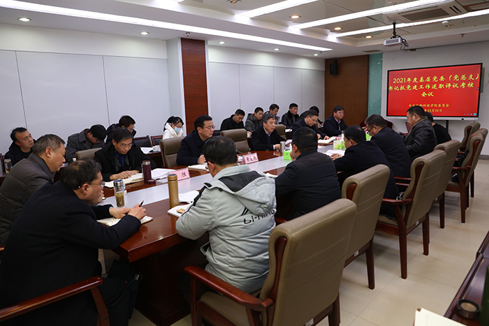 12月31日下午,学校党委组织召开2021年度基层党委(党总支)书记抓党建工作述职评议考核会议。党委书记蒋德勤,党委委员、副院长黄远友,党委委员、副院长黄友锐,党委委员、副院长李升和,党委委员、党委宣传(统战)部部长卫胜出席会议。基层党委(党总支)书记,党支部书记代表,第三次党代会代表,教代会工代会代表,民主党派代表,“两代表一委员”代表,教师代表,学生代表,党委部门和部分职能部门负责人等参加会议。会议由蒋德勤主持。