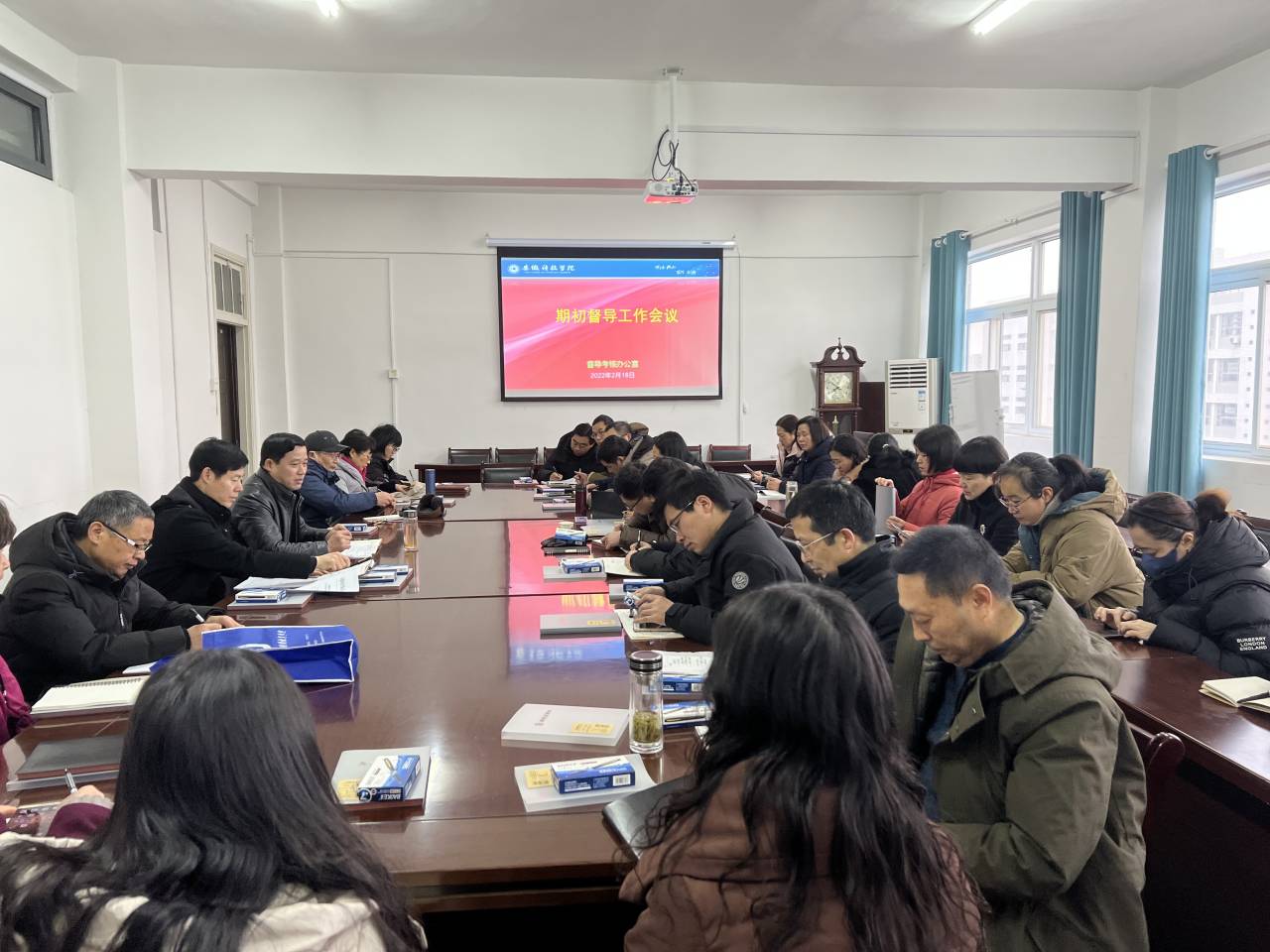 为加强教学质量监控工作,促进教师教学水平提升,保障新学期教学工作规范开展,2月18日上午,学校在学知楼417室召开新学期期初教学督导工作会议。全体校教学督导员、院级督导组组长及督导考核办公室成员参加了会议,会议由督导考核办公室主任程斌主持。