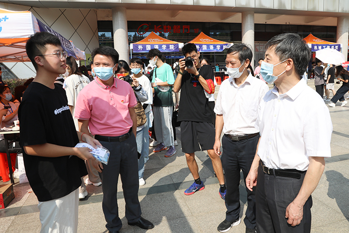 带着对新生的亲切关怀,上午9时,校党委书记蒋德勤,党委副书记、院长李震,党委委员、副院长黄远友,党委委员、纪委书记、监察专员王强,党委委员、副院长李升和等来到凤阳校区迎新报到现场,详细了解迎新组织工作和新生报到情况,亲切慰问参与迎新工作的师生。