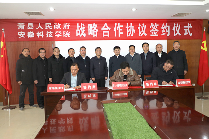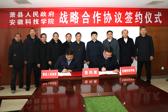 2月23日,我校与萧县人民政府在凤阳校区新图书馆九楼会议室签订产学研合作协议。校党委副书记、院长李震,校党委委员、副院长黄远友,萧县县委副书记、县长朱新华,萧县政府党组成员、副县长郭承亮,政府党组成员、副县长胡先锋出席签约仪式。仪式由黄远友主持。