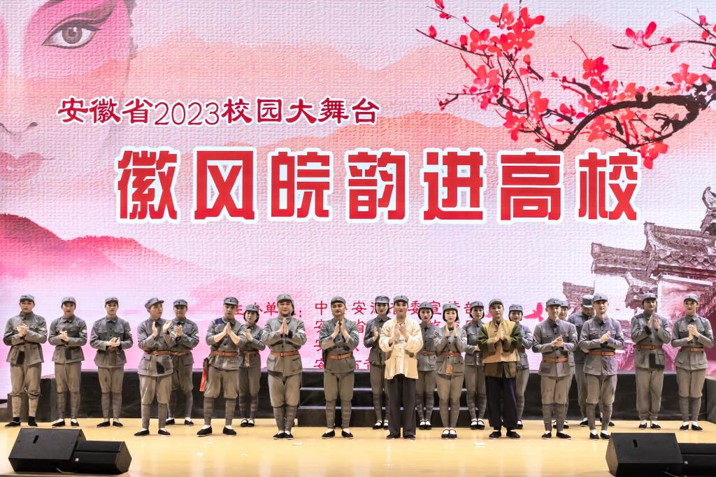 4月26日、4月27日,由中共安徽省委宣传部、安徽省教育厅、安徽省文化厅联合主办的2023年校园大舞台—“徽风皖韵”进校园活动分别在我校凤阳校区大学生活动中心和龙湖校区报告厅举行。校党委副书记、院长李震,党委委员、机关党委书记卫胜,党委委员、党委宣传(统战)部部长何永勇与我校千余名师生共同欣赏了由安庆市黄梅戏艺术剧院大型黄梅戏《太阳山上》。