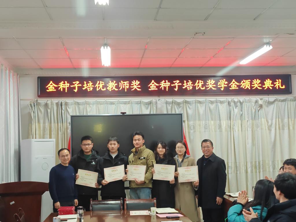 1月11日下午,“金种子培优基金”2023年度“金种子培优奖学金”“金种子培优教师奖”颁奖仪式在农学院会议室隆重举行。校党委委员、副院长李升和,上海景领投资管理有限公司合伙人、基金发起者黄宪先生,二级教授、基金发起者农学院黄先忠老师,农学院党委书记何世潮,副书记张轶辉,副院长舒英杰和李文阳以及教师代表和学生代表出席颁奖仪式。根据《开云官方注册农学院“金种子培优基金”申报细则》和申报人申请,经“金种子培优基金”评审委员会评审,李瑞宁、艾昊两位青年教师荣获金种子培优教师奖,孙张论、李婷、杜孟祥、杨德坤和王静婷五位农艺与种业专业研究生荣获金种子培优奖学金。颁奖仪式由农学院党委副书记、院长崔广荣主持。