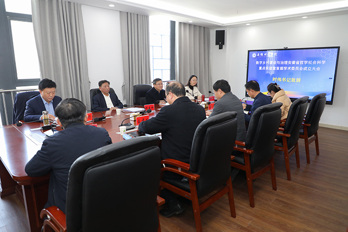 3月19日,我校数字乡村建设与治理安徽省哲学社会科学重点实验室学术委员会在龙湖校区成立。中国工程院院士、合肥工业大学杨善林教授受聘担任重点实验室学术委员会主任委员。合肥工业大学科研院副院长梁昌勇教授,中国科学技术大学EMBA中心主任、安徽省发展战略研究会会长刘志迎教授,安徽农业大学经济管理学院会计学系主任孟枫平教授应邀出席成立仪式并受聘担任学术委员会委员。校党委书记、重点实验室主任时伟出席并讲话。会议由校党委委员、副院长王孝义主持。